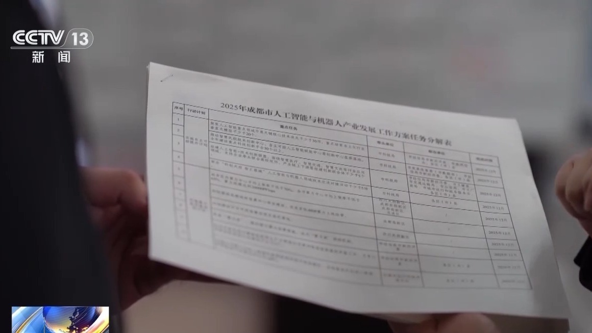 眼下,成都已建设60余个与人工智能和机器人相关的创新平台,2024年产业规模超过1000亿元,同比增长39%,算力更是增长了7倍。那么今年如何更进一步,推动产业实现跃升?在成都市人工智能与机器人发展工作专班,记者看到,每天的工作计划排得满满当当。