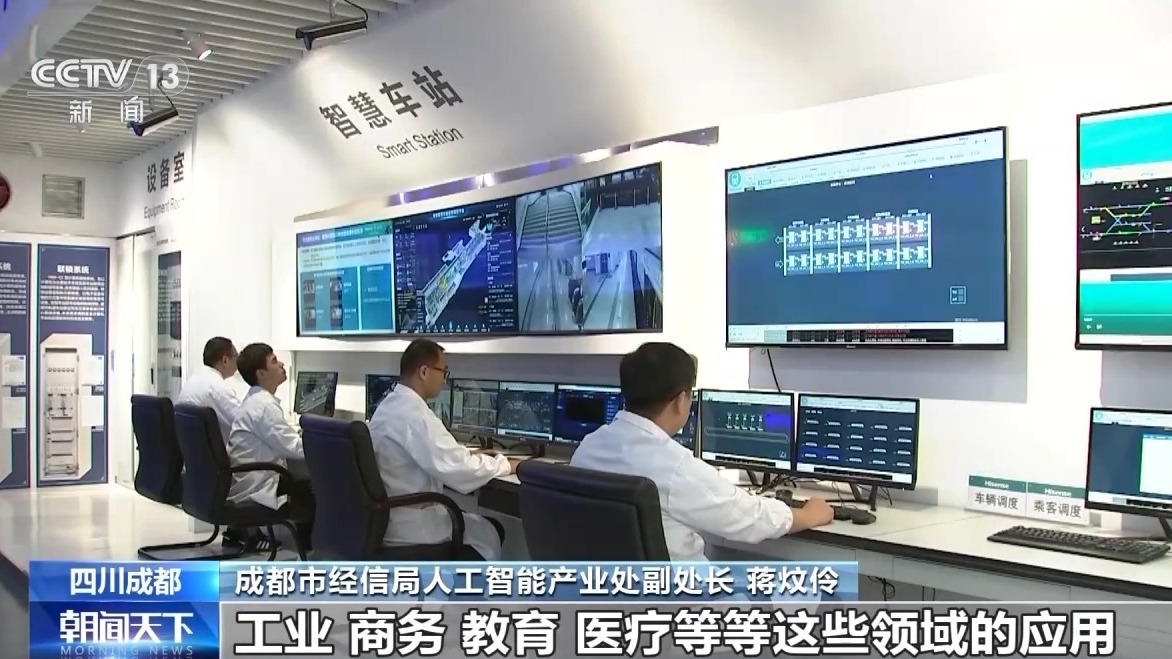 成都市经信局人工智能产业处副处长 蒋炆伶:目前已经计划了有40多项人工智能方面的工作,其中很大的一部分都是为了推动工业、商务、教育、医疗等等这些领域的应用。重点培育行业大模型,建设重点科技创新平台,发布场景机会清单、开放机器人标志性应用场景,力争今年成都人工智能产业规模达到1300亿。